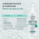 • Curățare Profundă: Formula sa unică penetrează porii pentru a elimina eficient impuritățile și excesul de sebum, fără a usca pielea.